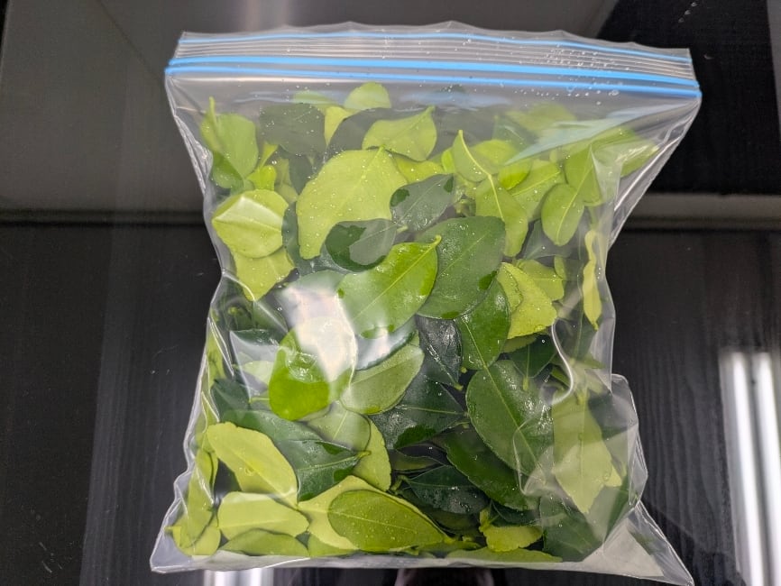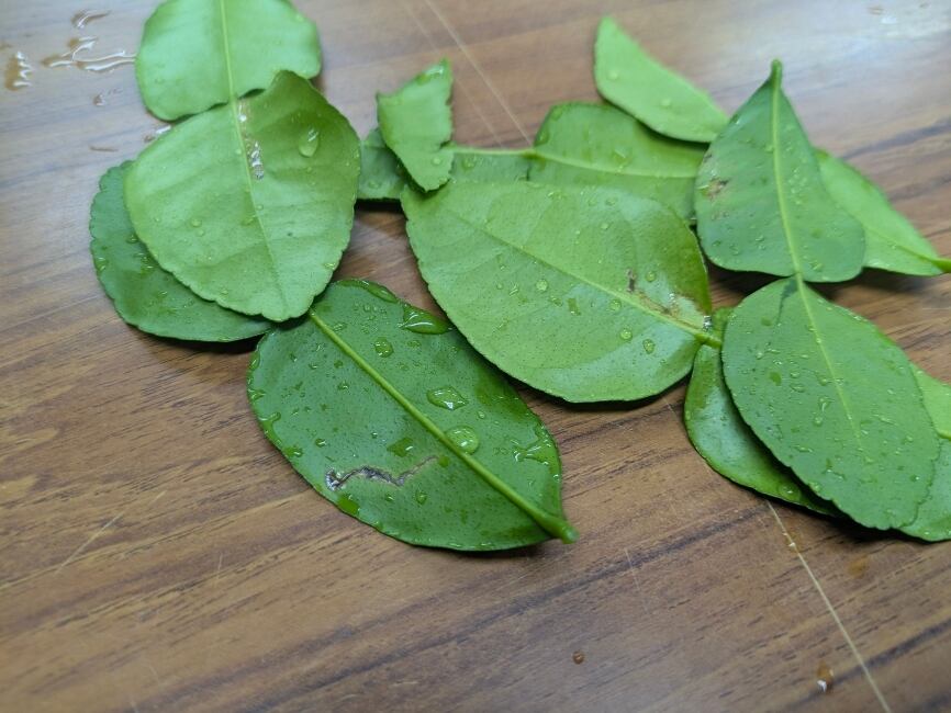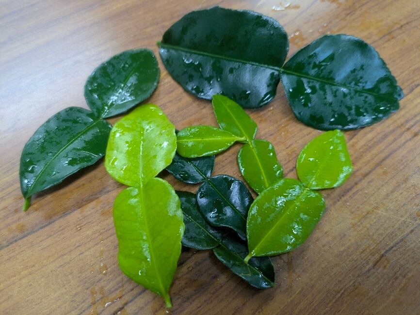 枝の上の方の葉っぱから,下の方の葉っぱまでを収穫したものになります。