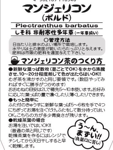 インドなど原産のシソ科のハーブ。日本へはブラジルから伝わってきました。マンジェリコン(ボルド)と呼ばれています。ブラジルの言葉でバジルを意味する言葉Manjericãoからきています。ボルド、フォースコリーと呼ぶこともあります。インドではコレウス・フォースコリーと呼ばれていてアーユルヴェーダー(伝統医学)で使われているハーブです。地域によって呼び名がまちまちです。