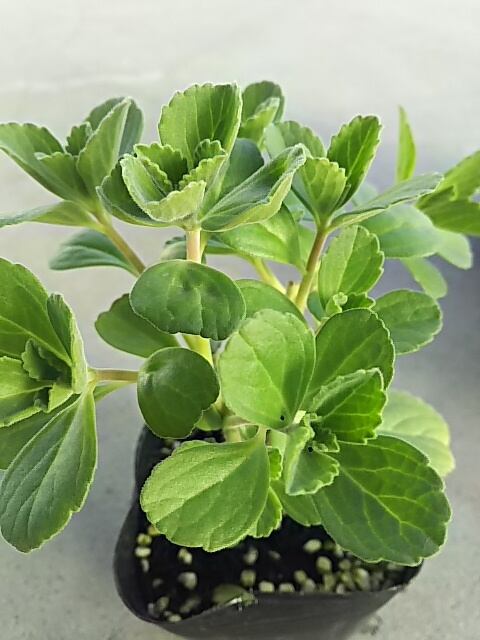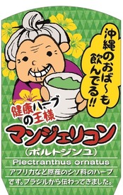 アフリカ東部など原産のシソ科のハーブ。日本へはブラジルから伝わってきました。マンジェリコン(ポルトジンユ)と呼ばれてきました。ブラジルの言葉でバジルを意味する言葉Manjericãoからきています。ボルドジンユ、沖縄マンジェリコンと呼ぶこともあります。高さ1m程度、多肉質で強健です。地域によって呼び名がまちまちです。